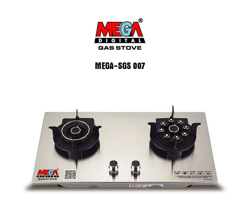 - Mega Double Gas Stove MEGA SGS 007 গ্যাস সাশ্রয়ী, টেকসই এবং সহজ ব্যবহারের একটি চমৎকার গ্যাস চুলা। এর স্টেইনলেস স্টিল বডি ও ব্রাস বার্নার দীর্ঘস্থায়ী ও নিরাপদ রান্না নিশ্চিত করে। আধুনিক ডিজাইন ও নির্ভরযোগ্য পারফরম্যান্স এটিকে করে তোলে প্রতিদিনের রান্নার জন্য আদর্শ পছন্দ।