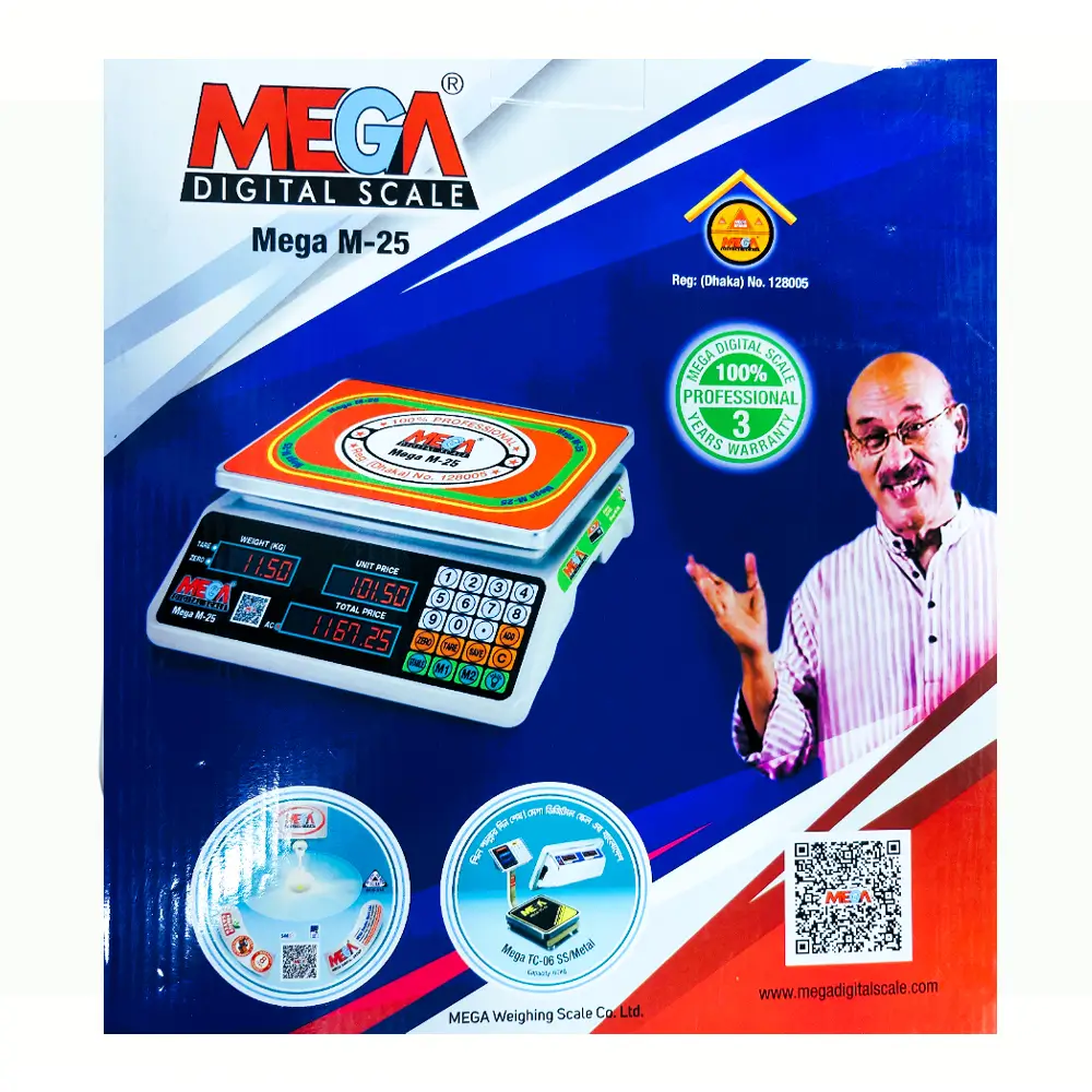 Mega Digital Weight Scale 25 kg (Model: M-25) Price Computing Scale – মেগা ডিজিটাল ওজন স্কেল ২৫ কেজি (মডেল: M-25) মূল্য গণনা স্কেল