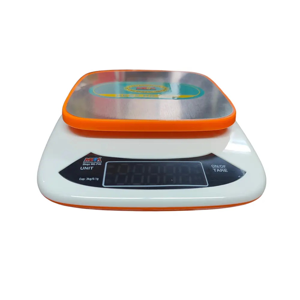 MEGA Digital Weight Scale 3kg (Model: MG-P40) হলো একটি ছোট ও নির্ভুল ডিজিটাল ওজন পরিমাপক যন্ত্র, যা সর্বোচ্চ ৩ কেজি পর্যন্ত ওজন পরিমাপ করতে সক্ষম। এটি বিশেষভাবে রান্নাঘর, অফিস, ল্যাবরেটরি, বা হালকা ওজনের পণ্য ও সামগ্রী পরিমাপের জন্য ডিজাইন করা হয়েছে। компакт ও আধুনিক ডিজাইন সহ এটি সহজে বহনযোগ্য এবং ব্যবহার উপযোগী।