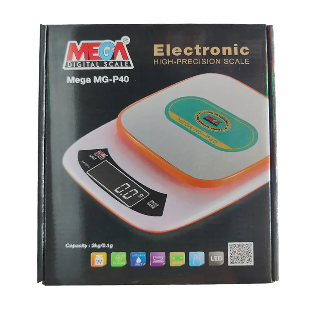 MEGA Digital Weight Scale 3kg Model MG-P40 হলো একটি নির্ভুল, কমপ্যাক্ট এবং ব্যবহারবান্ধব ডিজিটাল স্কেল, যা হালকা ও মাঝারি ওজনের সামগ্রী পরিমাপের জন্য উপযুক্ত। এর আধুনিক ডিজাইন ও মাল্টি-ফাংশনাল কীগুলো রান্নাঘর থেকে অফিস বা ল্যাব পর্যন্ত ব্যবহারে সুবিধাজনক।