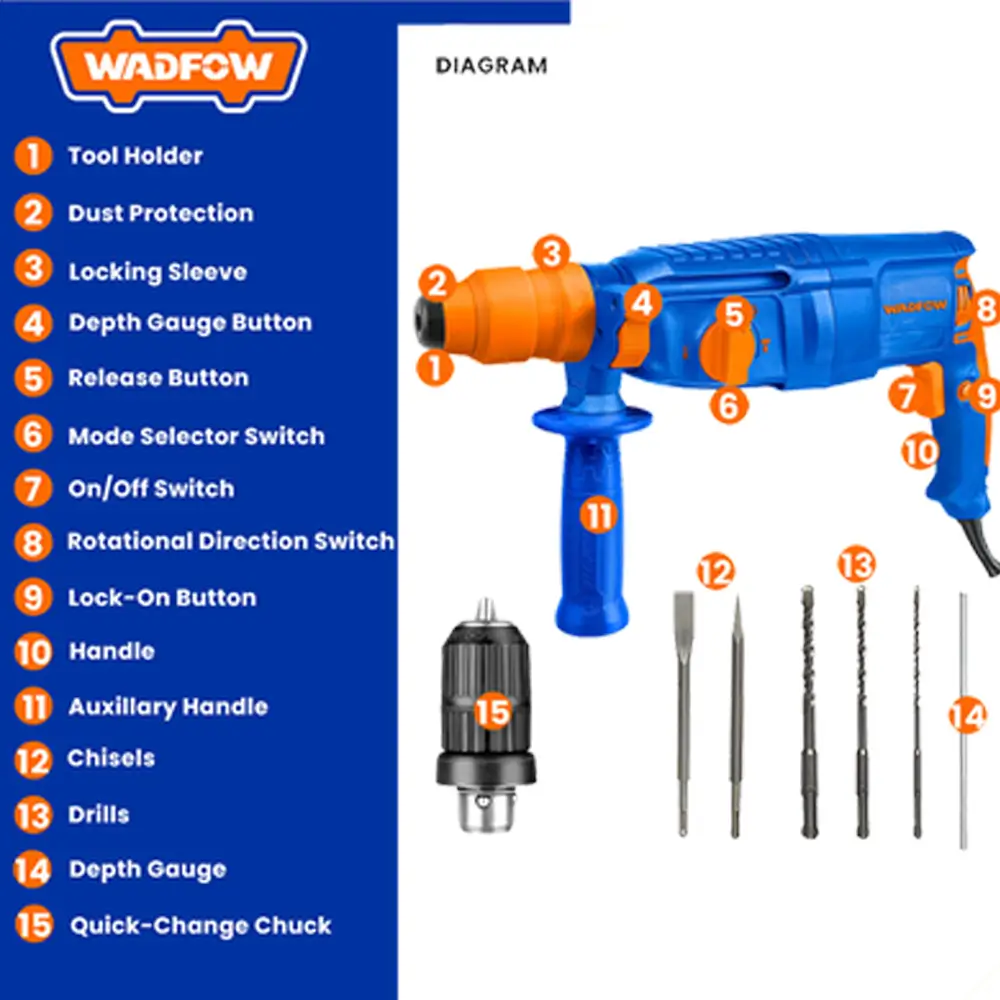 WADFOW WRH1D26 Rotary Hammer Drill (800 W):